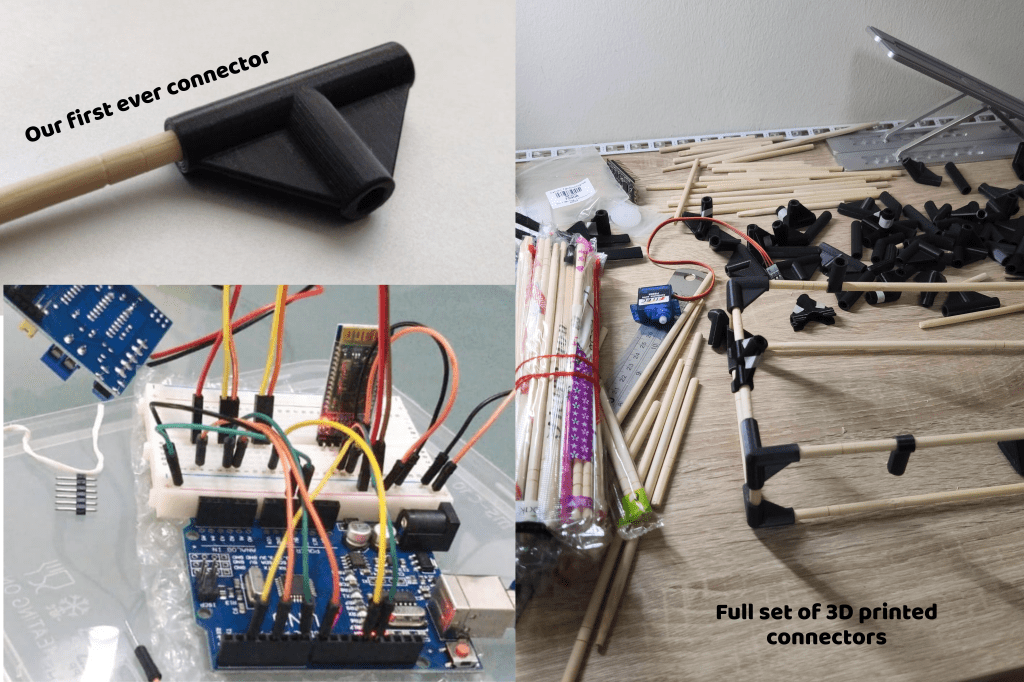 For the 3D printed connectors, we were running multiple 3D printers at a time in Singapore Polytechnic’s FabLab (shoutout to Louis for being so patient with us)