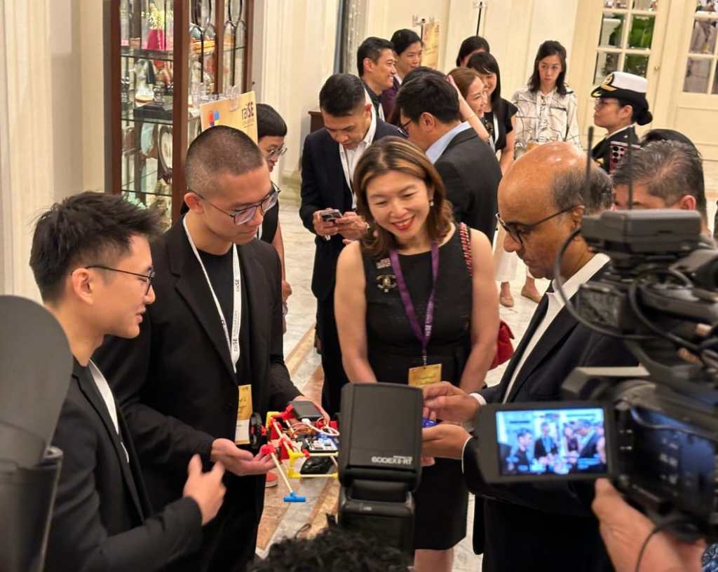President Tharman Shanmugaratnam: “Adam Huh Dam and Chong Ing Kai, who started when they were students. They made simple and affordable robotic kits that can be introduced in our schools, and in the developing countries around us too.”